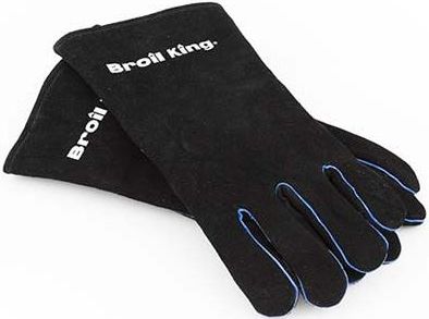 Heavy duty leather grilling gloves with extra soft linings. Black gloves and blue accents with a silk screen Broil King® logo. These deluxe grilling gloves become more comfortable the more that they're worn.