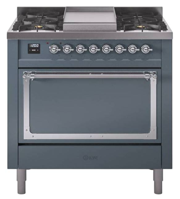 Introducing the new Nostalgie II 36" dual fuel range, a classic addition with a touch of innovation to any kitchen. This range feature sealed burners equipped with total black brass burner that has a non-stick nanotechnological coating, heavy cast iron grates, 3.5 cu. ft. total oven capacity and soft closing door system.Read More