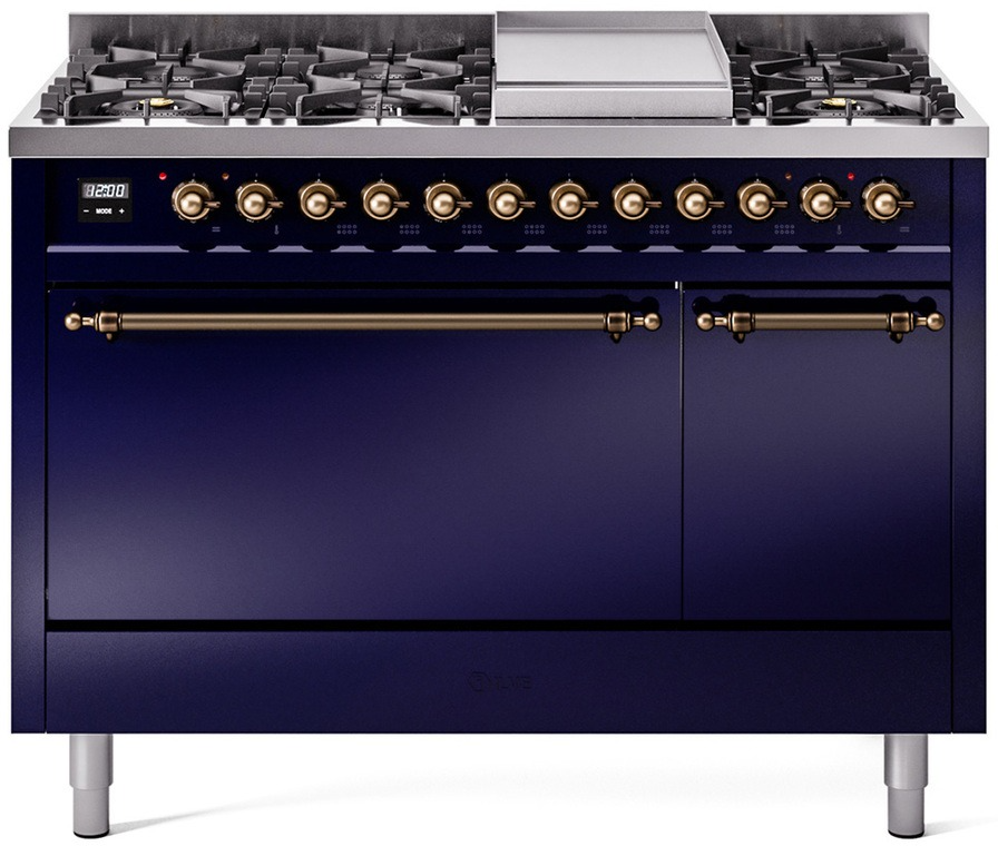 Introducing the new Nostalgie II 48" dual fuel range, a classic addition with a touch of innovation to any kitchen. This range feature sealed burners equipped with total black brass flame spreader that has a non-stick nanotechnological coating, heavy cast iron grates, 3.5 + 1.52 cu. ft. total double oven capacity and soft closing door system.Read More