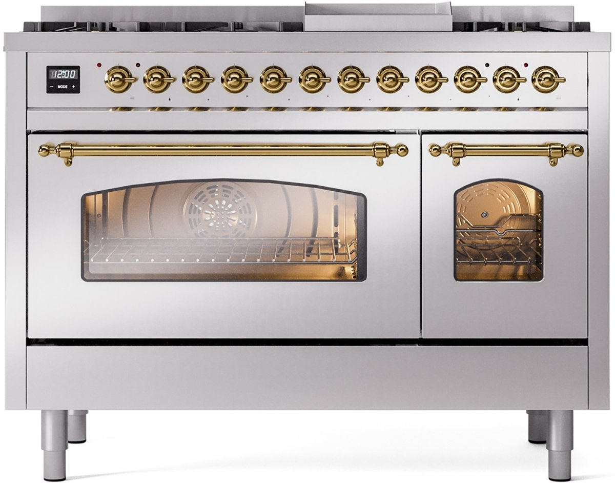 Introducing the new Nostalgie II 48" dual fuel range, a classic addition with a touch of innovation to any kitchen. This range feature sealed burners equipped with total black brass flame spreader that has a non-stick nanotechnological coating, heavy cast iron grates, 3.5 + 1.52 cu. ft. total double oven capacity and soft closing door system.Read More