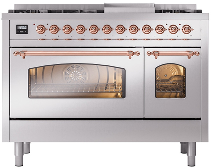 Introducing the new Nostalgie II 48" dual fuel range, a classic addition with a touch of innovation to any kitchen. This range feature sealed burners equipped with total black brass flame spreader that has a non-stick nanotechnological coating, heavy cast iron grates, 3.5 + 1.52 cu. ft. total double oven capacity and soft closing door system.Read More
