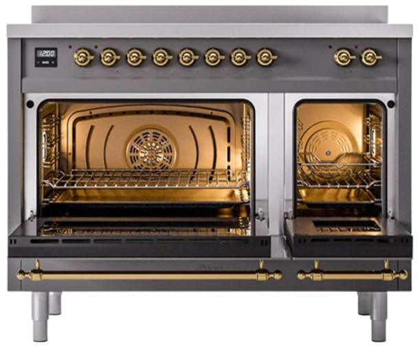 ILVE's Nostalgie II brings the ultimate cooking experience to your kitchen with many updated features that enhanced the original Classic Nostalgie with Powerful Zone Booster Function, Easy Clean Enamel Oven Interior and an updated Oven Control. This 48" induction model also features Residual Heat Indicator Triple Glass Cool Down, Updated Oven Control and Soft Closing System.Read More