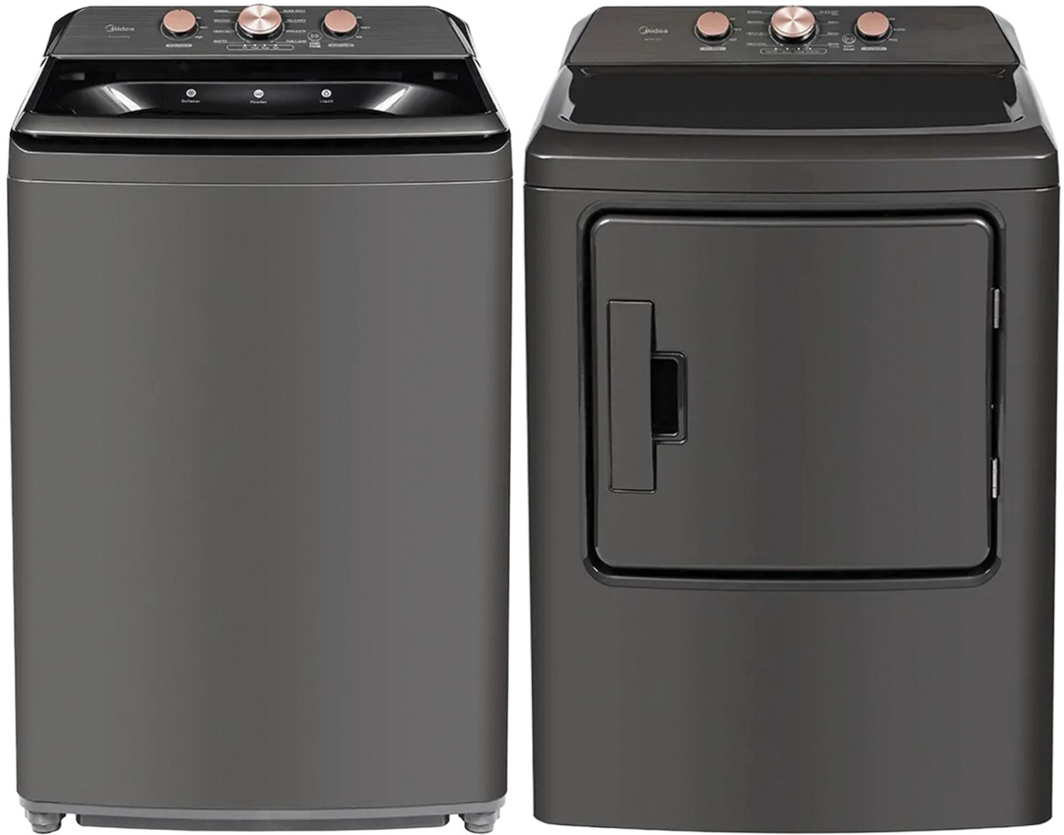 Midea Metallic Gray Top Load Washer and Electric Dryer Laundry Pair with 4.1 Cu. Ft. Top Load Washer with Power Boost Agitator and 7 Cu. Ft. Front Load Electric Dryer.Read More
