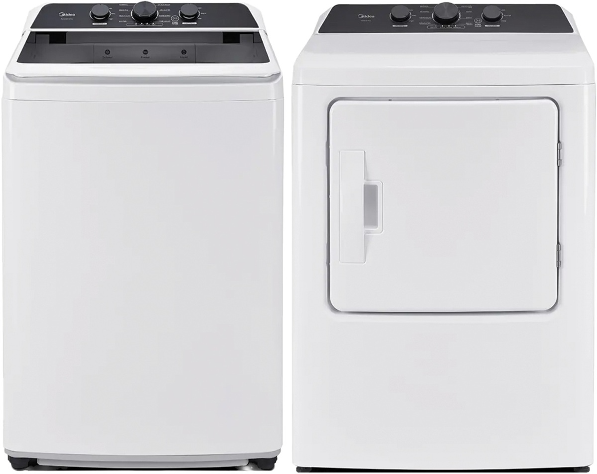 Midea® White Top Load Washer and Electric Dryer Laundry Pair with 4.1 Cu. Ft. Agitator Top Load Washer and 7 Cu. Ft. White Front Load Electric Dryer.Read More