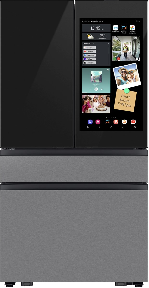Samsung's Bespoke 29 cu. ft. 4-Door French Door Refrigerator features AI Family Hub™+ - the entertainment hub with 32" touchscreen, that's built into your fridge. AI Vision Inside™ recognizes select items that you put in and take out of your fridge, so you always know what's inside.Read More