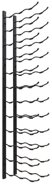 At last--a new wall-mount metal wine rack option! This 36 bottle metal rack can be fastened to almost any wall. It features sturdy metal construction and artfully displays your bottles with the labels visible for show. This unique, patented wire rack from Epicureanist consists of two identical pieces that cradle each end of the body of your bottle for a dazzling display. Rack stores bottles 3 deep. There should be 3 ¼" space between the metal bars for a rack. If you're placing multiple racks side by side, then you should allow for 9" to 10" between the racks.Read More