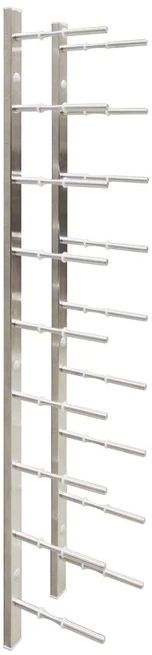 At last--a new wall-mount metal wine rack option! This 9 bottle peg wine rack can be fastened to almost any wall or inside of a wine cabinet. The modern design of the metal rack pegs allow for extreme flexibility while securely cradling your wine bottles, giving them the illusion that they’re floating in mid-air. This unique peg wine rack consists of two identical pieces that cradle each end of the body of your bottle for a dazzling display. Try Epicureanist wine racks! There should be 3 ¼" space between the metal bars for a rack. If you're placing multiple racks side by side, then you should allow for 8" between the racks.Read More