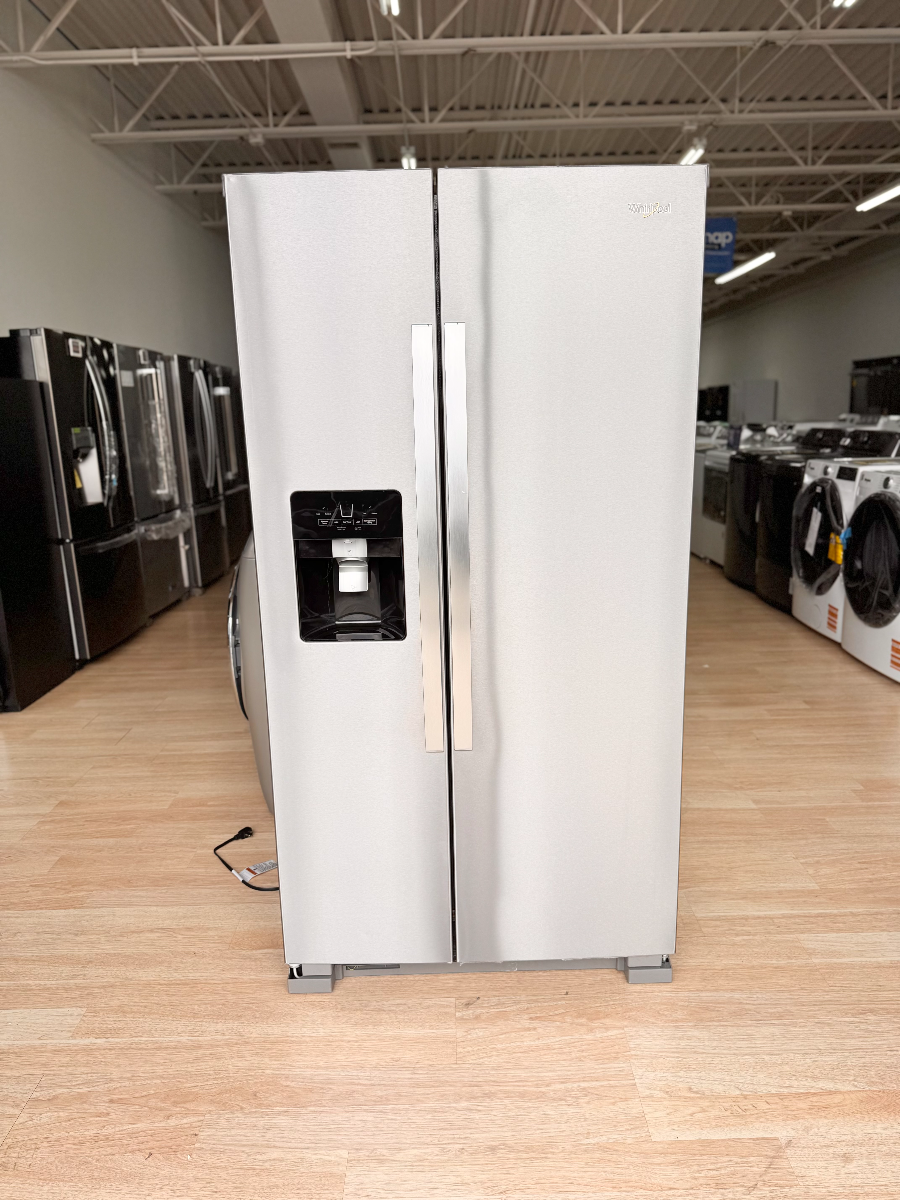 Fit and find it all in this side-by-side refrigerator with purposefully-designed storage spaces for items you use most. An in-door can caddy frees up shelf space while frameless glass shelves lets you store more items on each shelf for loading flexibility. The deli drawer gives you plenty of space to store meat and cheese, too.Read More